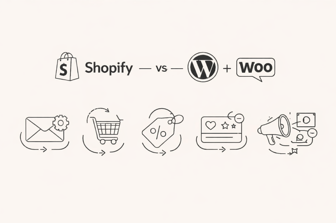 La questione shopify o wordpress per ecommerce coinvolge anche gli strumenti di marketing inclusi. Shopify integra nativamente: